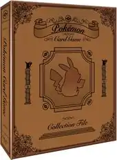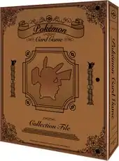 File: The 4-ring Old Book-style Design Collection File (Japanese: コレクションファイル 古書風デザイン) emulates an antiquated photo album featuring Pikachu silhouettes. Each file comes with ten 9-pocket pages for card display and can hold up to 20 pages, enabling the storage of up to 360 cards in total. Refills sold at the same time included 10 pages and an index sheet featuring the same design as the file. Both products were exclusive to Pokémon Centers.