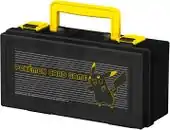 Carrying case: The Solgaleo & Lunala Carrying Case (Japanese: キャリングケース「ソルガレオ・ルナアーラ」) features several molded partitions to store up to 1,300 cards. Larger partitions can also be used to store deck cases and other accessories. Each case comes with a set of 11 card dividers and an index sticker sheet. The box design features silver outlines of Solgaleo and Lunala against a blue background.