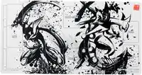 - The Mega Rayquaza Advent Sleeves (Japanese: デッキシールド メガレックウザ 降臨 Deck Shield: Mega Rayquaza Advent) feature an atmospheric illustration of Mega Rayquaza emerging from a layer of cloud, its appearance accented by the breaking sun.