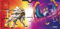 - The Solgaleo & Lunala Durable Playmat (Japanese: 丈夫なプレイマット「ソルガレオ・ルナアーラ」), which could be purchased at a wide variety of retailers, contains a complete 2-player play area. Each play area features one of the Pokémon Sun and Moon mascots, utilizing the same Hiroyuki Yamamoto artwork as other SM1 merchandise.