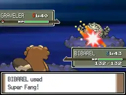 | Bibarel's front teeth glow white and it bites down on the opponent. | |||