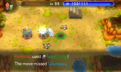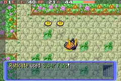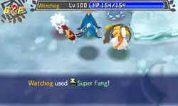 In Red Rescue Team and Blue Rescue Team and Explorers of Time, Darkness and Sky, Super Fang is a move with 17PP and 100% accuracy. It targets an enemy in front of the user, halving their HP. Unlike in main series, it is unable to KO target that is at 1HP, and will instead fail to work. This move is affected by the Muzzled status condition.