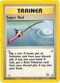 Super Rod (Japanese: すごいつりざお Amazing Fishing Rod) is an Item card. It was first released in the Neo Genesis expansion as a Trainer card.