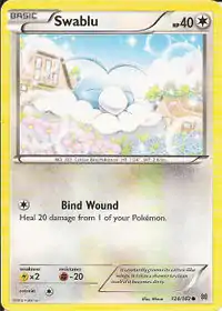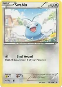 Swablu (Japanese: チルット Tyltto) is a Colorless-type Basic Pokémon card. It was first released as part of the Roaring Skies expansion.