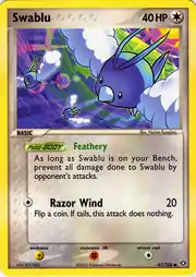 Swablu (Japanese: チルット Tyltto) is a Colorless-type Basic Pokémon card. It is part of the EX Emerald expansion.