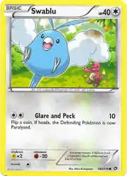 Swablu (Japanese: チルット Tyltto) is a Colorless-type Basic Pokémon card. It is part of the Legendary Treasures expansion.