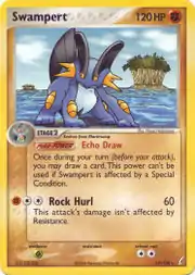 Swampert (Japanese: ラグラージ Laglarge) is a Fighting-type Stage 2 Pokémon card. It is part of the EX Crystal Guardians expansion.