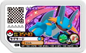 Swampert (Japanese: ラグラージ Laglarge) is a Grade 4 Pokémon Ga-Olé disk. It is part of the second Grand Rush set.
