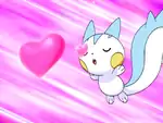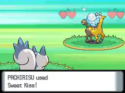 | Pachirisu blows a kiss at the opponent, releasing a pink heart at it. When the heart hits the opponent, the opponent becomes confused. | |||