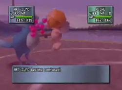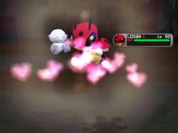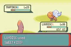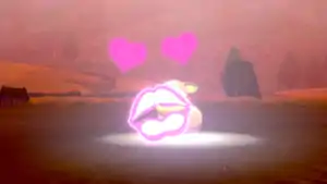 | Luvdisc's mouth glows pink and releases a pink heart from it at the opponent, confusing it. | |||