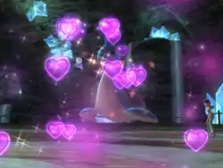 | Luvdisc releases multiple floating hearts from its mouth at the opponent. The hearts float around the opponent, causing it to become happy. | |||