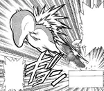 Skarmory flaps its wings and a beam formed of numerous glowing stars comes out of them and hits the opponent, or Skarmory opens its beak and fires a beam of energy from it at the opponent. | ||
