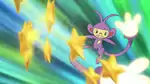 Mienfoo spreads its arms wide open, forming multiple yellow stars with golden sparkles around itself. It then puts its hands together, firing the stars at the opponent. | ||