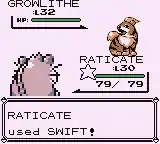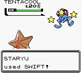 In the Western versions of the Generation I handheld games, Swift inflicts damage and bypasses accuracy checks to always hit. It can hit a Pokémon even during the semi-invulnerable turn of a move such as Dig or Fly.