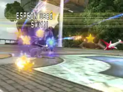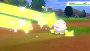 Sylveon jumps into the air and swings its tail, releasing multiple yellow stars with golden sparkles around them at the opponent. | ||