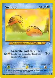 Swinub (Japanese: ウリムー Urimoo) is a Water-type Basic Pokémon card. It is part of the Neo Destiny expansion.