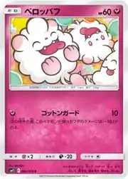 Swirlix (Japanese: ペロッパフ Peroppafu) is a Fairy-type Basic Pokémon card. It is part of the Cosmic Eclipse expansion.