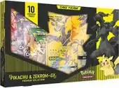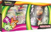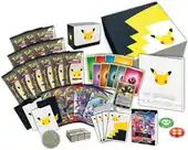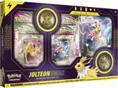 The Jolteon VMAX Premium Collection was one of three Eeveelution-themed Premium Collections available from December 3, 2021. The collection featured the Lightning Pokémon as Special Full Art Pokémon V and Pokémon VMAX cards, complementing the versions included in the Evolving Skies expansion. Two variants of the collection were sold in different countries, featuring slightly different box designs and contents. Both included the Jolteon promotional cards, a TCGO code card, a Jumbo copy of Jolteon VMAX, and a Jolteon pin. Those available in North America also included six booster packs and an extra-large coin, whereas those released in other Western markets included five booster packs and no coin.