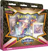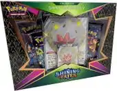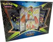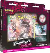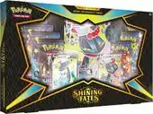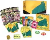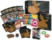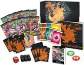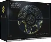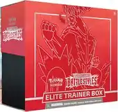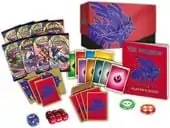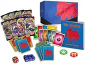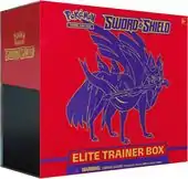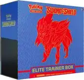 Released alongside the Sword & Shield expansion were a pair of Elite Trainer Boxes, featuring Crowned Sword Zacian and Crowned Shield Zamazenta. Within each box came eight booster packs, 65 card sleeves and four dividers decorated with the featured Legendary Pokémon, six damage counter dice and one coin-flip die, two acrylic Special Condition markers, a stock of basic Energy cards, a Sword & Shield Player's Guide, and a code card for the TCGO.