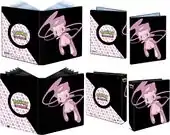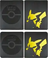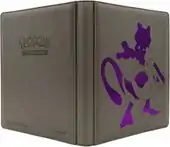 Binder: Two types of binder were released as part of this product line. Nine-pocket binders could hold up to 360 cards, while the twelve-pocket binders could hold up to 480 cards. The pages in each binder have side-loading pockets backed with a low-friction black material. Each binder is secured shut with a zipper and both have pull tabs bearing the Lightning-type symbol.
