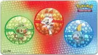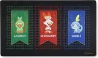 Galar First Partner Collection: The items in this assortment feature Grookey, Scorbunny, and Sobble on appropriately-colored banners bearing their names. One TCG accessory was included in this product line—a Galar First Partner Playmat.