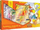 The third of three Eeveelution-centric Premium Collections was the Flareon VMAX Premium Collection. Like its counterparts, two versions were available to purchase in different regions from December 3, 2021. Both versions included Special Full Art cards featuring Flareon V and Flareon VMAX, a code card to unlock them in the Pokémon Trading Card Game Online, a Jumbo copy of Flareon VMAX, and a Flareon pin. North American versions also included six booster packs and an extra-large coin, whereas International versions included five booster packs and no coin.