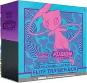 The Fusion Strike Elite Trainer Box was released in time with the launch of the Fusion Strike expansion on November 12, 2021. The box design features the Mythical Pokémon Mew and each box came packaged with eight Fusion Strike booster packs, 65 card sleeves and four dividers with a Mew design, six damage counter dice, a coin-flip die, two acrylic Special Condition markers, 45 basic Energy cards, a rulebook, a Fusion Strike Player's Guide, and a Pokémon Trading Card Game Live code card. The Pokémon Center-exclusive Fusion Strike Pokémon Center Elite Trainer Box was also available on November 12 and contained largely the same items. Compared to its regular counterpart, this version featured different box and Mew sleeve designs and came with the following additional items: 65 Genesect sleeves, a collectible Mew coin, and two more Fusion Strike booster packs for a total of ten.