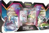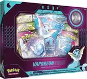 Three Premium Collections were released on December 3, 2021 focusing on the Kanto region Eeveelutions. One of these was the Vaporeon VMAX Premium Collection, which featured the Special Full Art version of Vaporeon V omitted from Evolving Skies during localization and a Special Full Art version of Vaporeon VMAX that originated as a rather limited Japanese promotional card. Two versions of the collection were available: one for sale in North America and another for sale outside North America. Both versions included the two Vaporeon cards, a code card to unlock them in the TCGO, a Jumbo copy of the Vaporeon VMAX, and a Vaporeon pin. The North American version also included six booster packs and an extra-large coin, whereas the International version only included five booster packs and no coin.