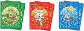 Pokémon Holiday Lights Collection: This line contained many festive decorations, items of winter clothing, and greeting cards. The only TCG paraphernalia was a Pokémon Holiday Lights Playmat, which features Pokémon gathered around a snow-covered Christmas tree—including the Generation VIII starters Grookey, Scorbunny, and Sobble.