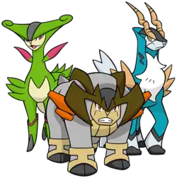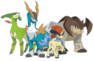 The reason is war between two human factions, which resulted in a forest fire in the Moor of Icirrus. The lives of many wild Pokémon that lived there were endangered because of it. Ensnared by the smoke, they could not escape and their demise seemed certain, until three figures appeared. Terrakion shaped the earth and created passage by which to escape, Virizion used its speed to shield the Pokémon from sparks and embers, while their leader, Cobalion, ushered Pokémon to safety. Despite their efforts, the forest eventually burned to the ground. However, amongst the ashes, the three came across a lone Pokémon known as Keldeo who was separated from its parents. The trio adopted Keldeo into their group and taught it the knowledge and moves necessary in order to survive. Over time, Keldeo began to surpass its teachers before leaving the forest, though it is unknown why it left.