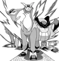 The trio proceeded to fight back the armies, overwhelming them with their combined might. Legends of them continue to be told today, and it has been said that if human conflict ever again threatened to safety of Pokémon, that they would return to quell the fighting and preserve a climate of peace.