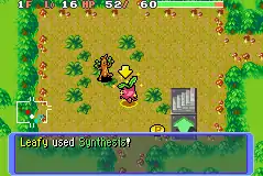 In Red Rescue Team and Blue Rescue Team, Synthesis is a move with 12PP. It heals the user for a fixed amount of HP dependent on the current weather: 50 HP under clear weather, 80 HP under sunny weather, 40 HP under cloudy weather, 30 HP under sandstorm, 10 HP under rain and hail, and 1 HP under snow and fog. This move is affected by Taunt and Snatch.