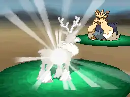 Lurantis's body becomes surrounded by white sparkles and its body glows white, healing its injuries. | ||