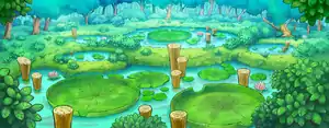 | Description: | Broad leaves float on the surface of this pond. It is the perfect home for tadpole Pokémon. Water Pokémon like it, too. | |||