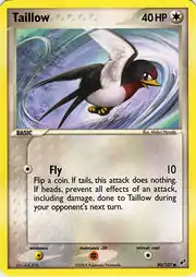 Taillow (Japanese: スバメ Subame) is a Colorless-type Basic Pokémon card. It is part of the EX Deoxys expansion.