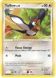 Focus Energy and Peck are both moves in the Pokémon games that Taillow can learn. This card's Pokédex entry comes from Pokémon Diamond and Pearl.