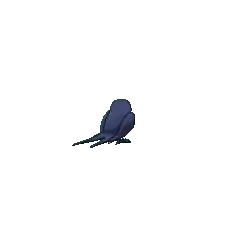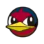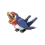 Taillow is a small bird Pokémon with dark blue feathers. A red marking with pointed tips stretches from its chest to its forehead, and it has a white underside. It has narrow brown eyes and a short yellow beak. It has elongated wingtips and black feet with yellow talons. Each foot has three toes facing forward and one backward. Two sharply pointed feathers form its tail.