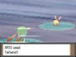 Xatu waves its wings at the opponent, causing a strong whirlwind that blows the opponent away. | ||