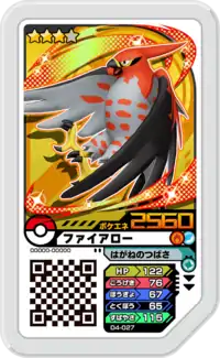 Talonflame (Japanese: ファイアロー Fiarrow) is a Grade 3 Pokémon Ga-Olé disk. It is part of the fourth Dash set.