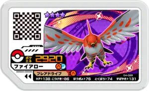 Talonflame (Japanese: ファイアロー Fiarrow) is a Grade 4 Pokémon Ga-Olé disk. It is part of the fourth Dash set.