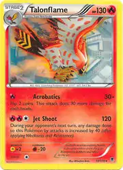 Talonflame (Japanese: ファイアロー Fiarrow) is a Fire-type Stage 2 Pokémon card. It is part of the Phantom Forces expansion.