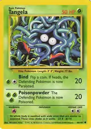 Tangela (Japanese: モンジャラ Monjara) is a Grass-type Basic Pokémon card. It was first released as part of the Base Set.