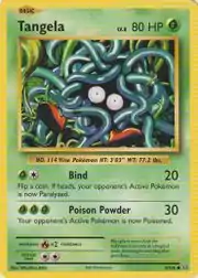 Bind and Poison Powder are both moves in the Pokémon games that Tangela can learn. This card's Pokédex entry comes from Pokémon Red and Green, and Pokémon FireRed. This card is based on Base Set Tangela.