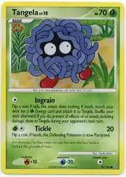 Ingrain and Tickle are both moves in the Pokémon games that Tangela can learn. This card's Pokédex entry comes from Pokémon Diamond and Pearl.