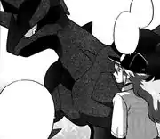 Zekrom first appeared in The King's Identity...!!. Atop Dragonspiral Tower it responds to N's commitment to his ideals and allows him to befriend it. He later uses it to destroy the Pokémon League and battle against Shin.