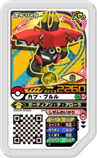 Tapu Bulu (Japanese: カプ・ブルル Kapu-Bulul) is a Special Pokémon Ga-Olé disk. It is one of the Promotional disks.