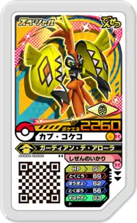 Tapu Koko (Japanese: カプ・コケコ Kapu-Kokeko) is a Special Pokémon Ga-Olé disk. It is one of the Promotional disks.