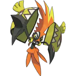 This Pokémon is called the guardian deity of Melemele Island. It's known for protecting its home, but it is fickle and will not necessarily help people in need. However, it is very curious and may come to play or battle with people or Pokémon that interest it. It is able to store electricity by closing itself inside the shells on its arms.[1] It has an explosive temper, but it instantly forgets what enraged it in the first place.