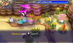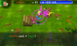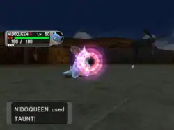 In Red Rescue Team and Blue Rescue Team, Taunt is a move with 20PP and 100% accuracy. It targets enemy, inflicting Taunted status condition. A Taunted Pokémon, as in the main series games, cannot use status moves; they also cannot use Seeds or Wonder Orbs. This move is affected by the Taunted status condition, as well.