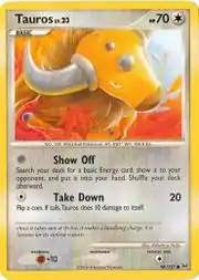 Tauros (Japanese: ケンタロス Kentauros) is a Colorless-type Basic Pokémon card. It is part of the Platinum expansion.